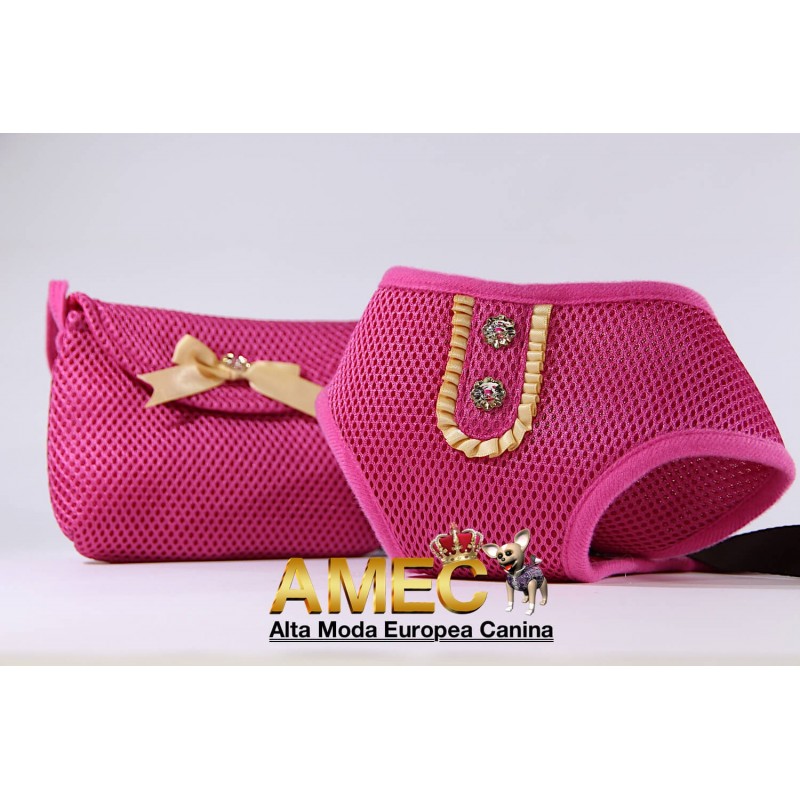 El arnes para perros elegancia fucsia esta fabricado en doble malla de poliéster para mayor durabilidad.