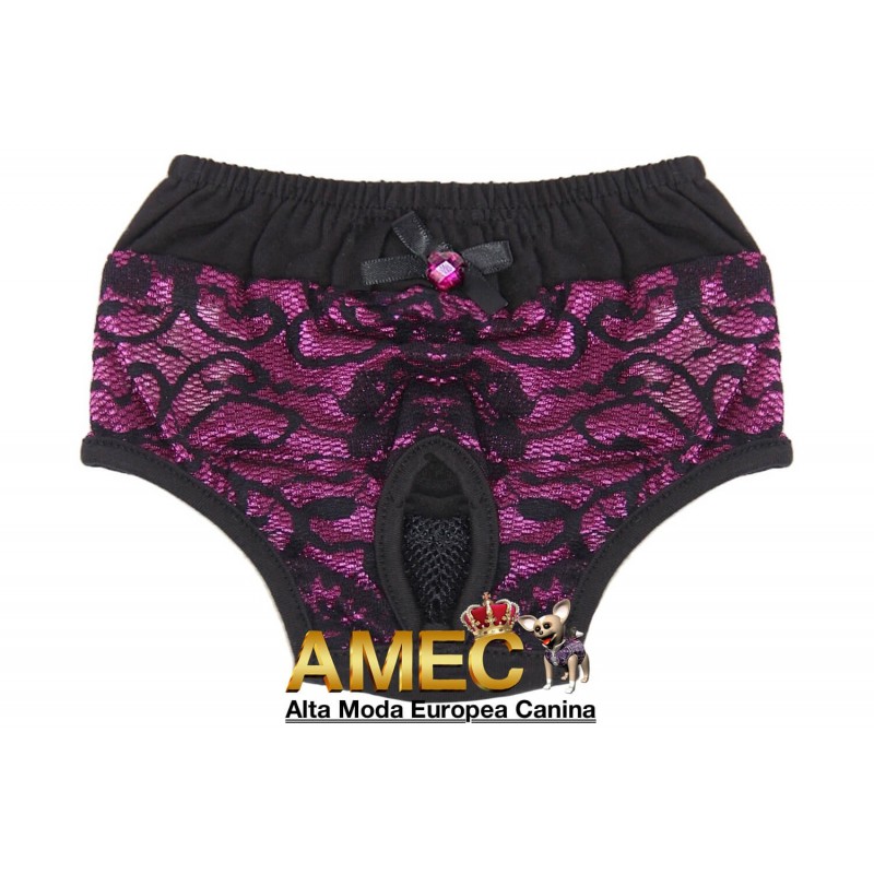 La braguita para perritas purpura y encaje es suave y de alta calidad.