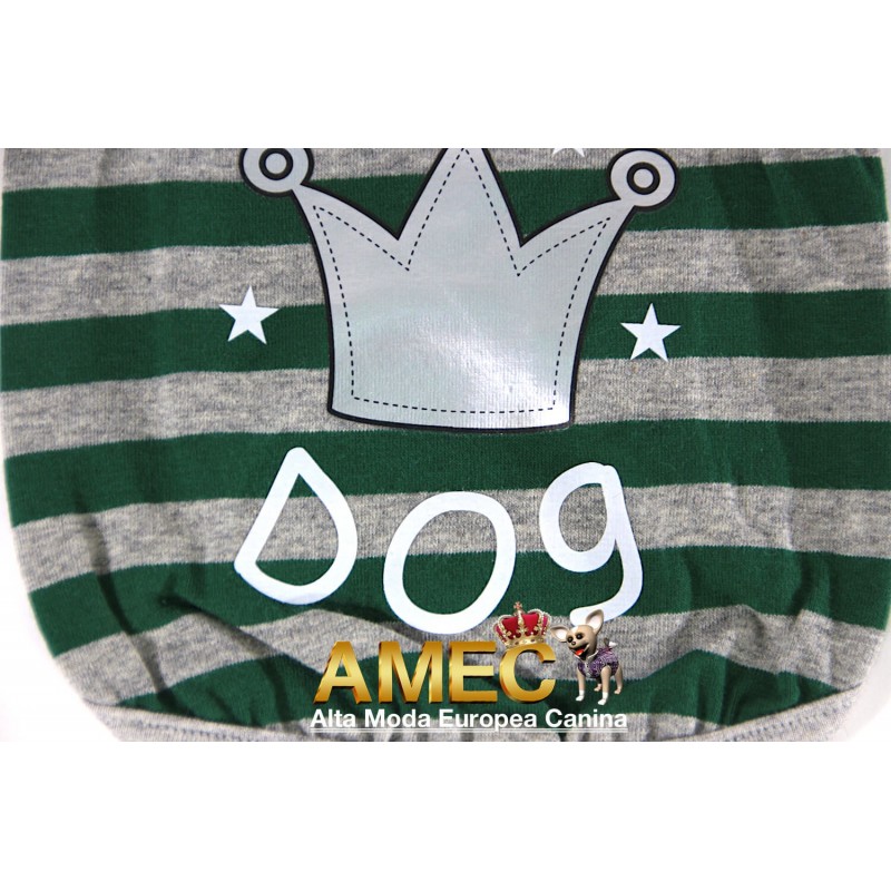 La camiseta para perros TOP DOG CROWN gris y verdea es suave y de alta calidad.