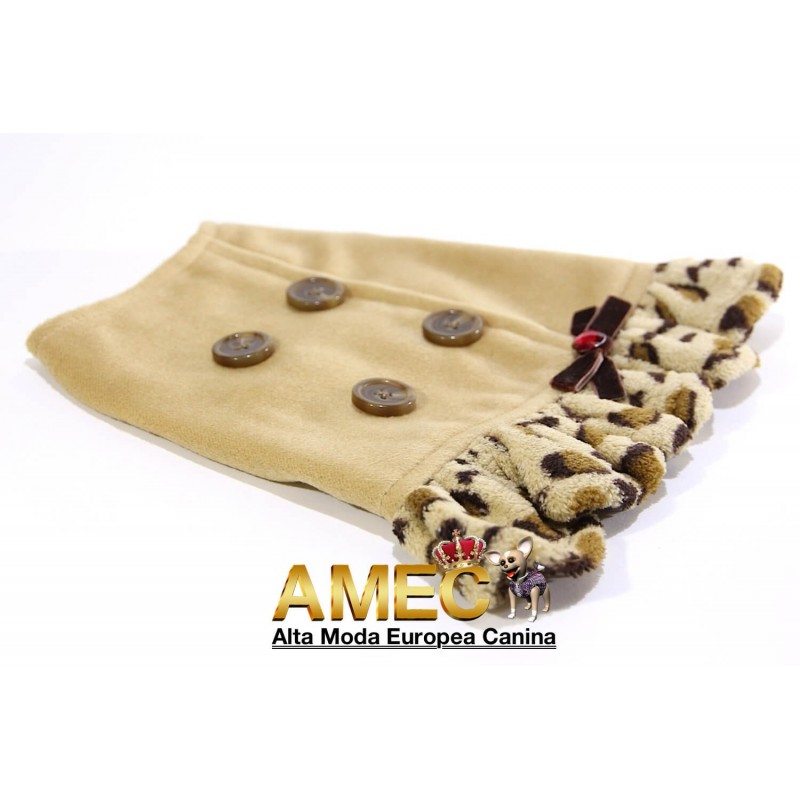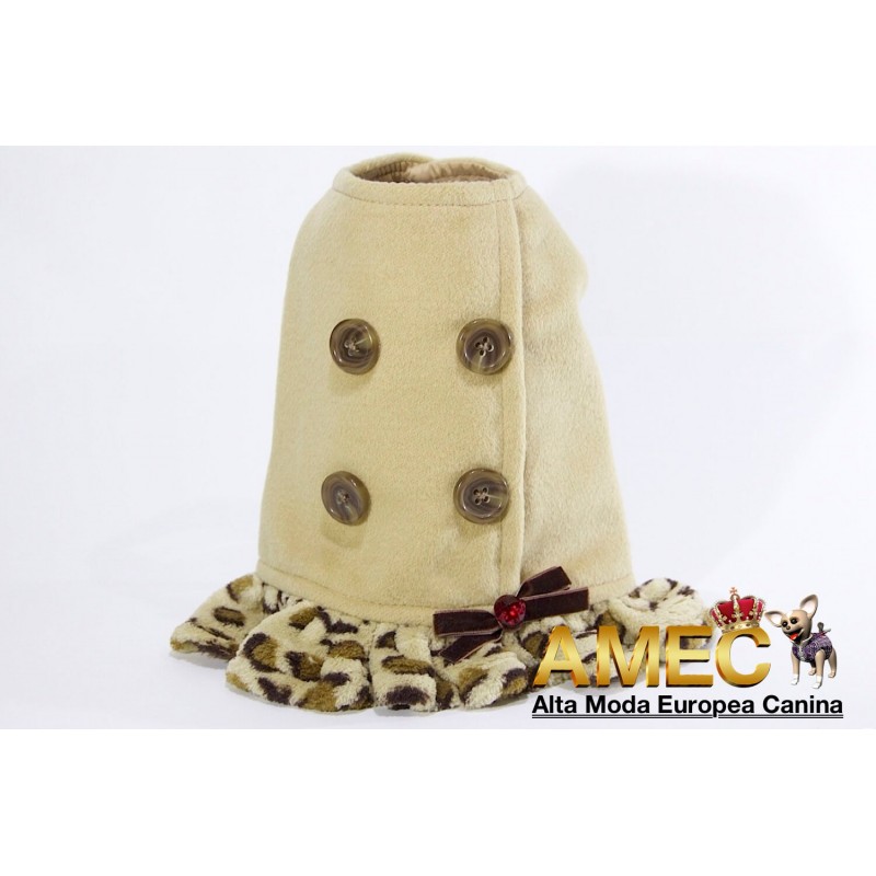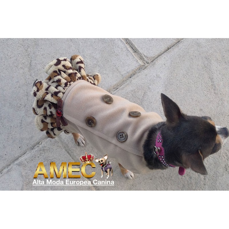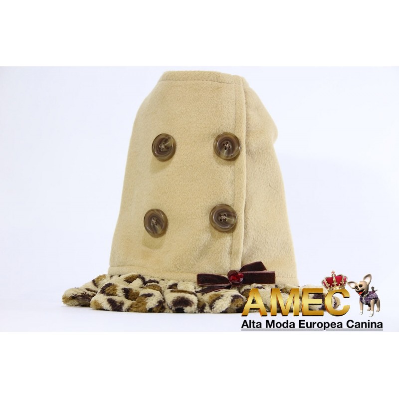 Espectacular vestido en una sola pieza, simulando un conjunto de falda y chaqueta.
