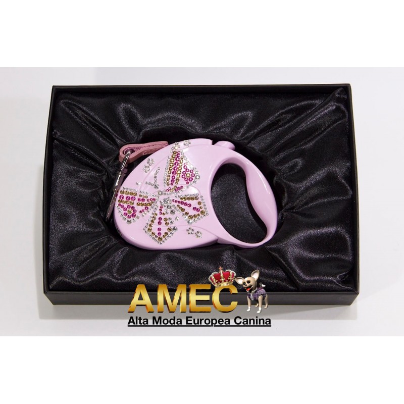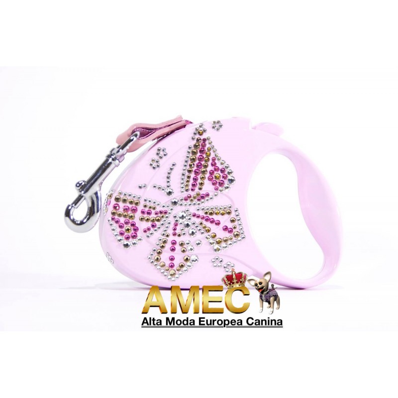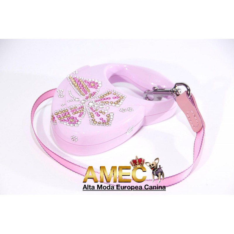 You can take your dog on a short leash or long leash dog Flexi Glam Butterfly.