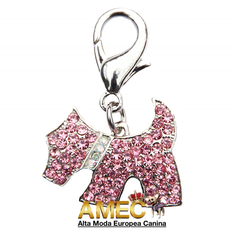 El colgante para perros doggy con cristales rosa es el complemento ideal para que tu perro lo luzca en el collar.