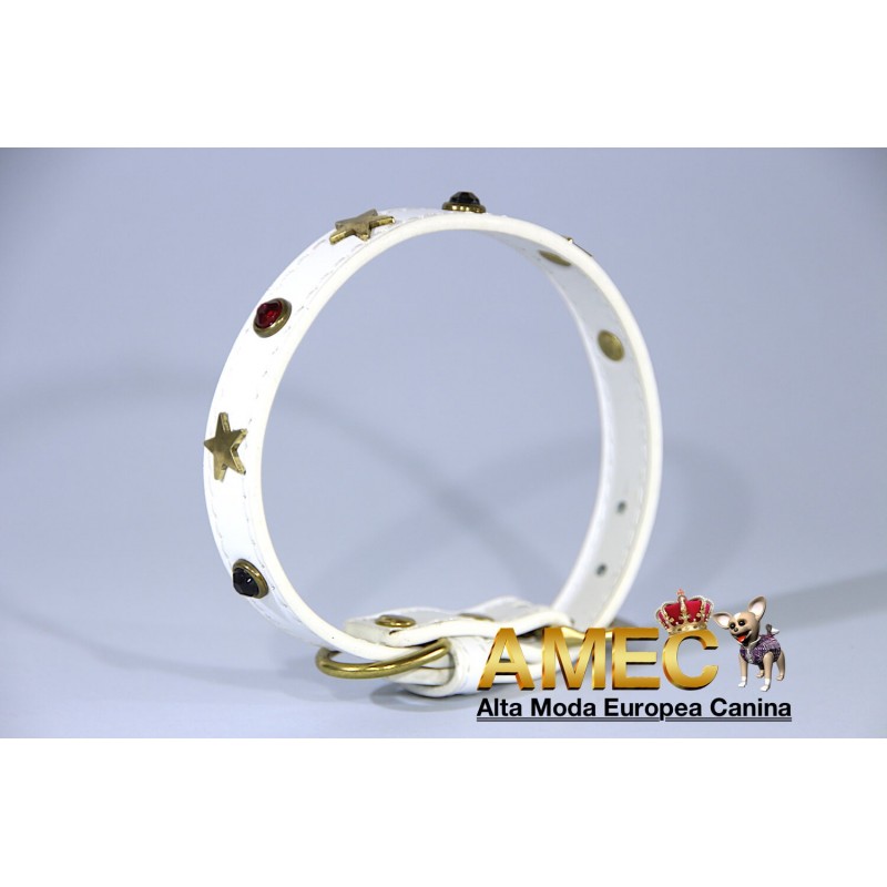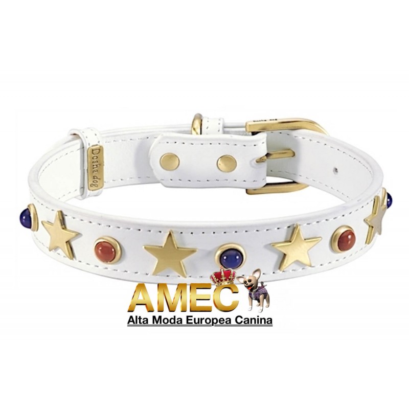 Este precioso collar para perros de cuero blanco y estrellas es sencillamente divino.